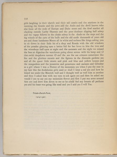 Последняя страница романа Джеймса Джойса «Улисс». Издательство Shakespeare and Company. Источник: The Morgan Library & Museum