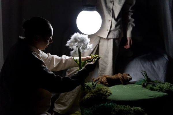 Как и во всяком бэби-спектакле, в премьере важна «осязаемость» объектов, однако в случае с архангельской премьерой этой составляющей уделено особое внимание: перед входом в Театральную гостиную для юных зрителей организован специальный «тактильный уголок» с природными материалами. Сам же мир постановки, преображающийся со сменой времён года, создавала художница Наталия Макарова.